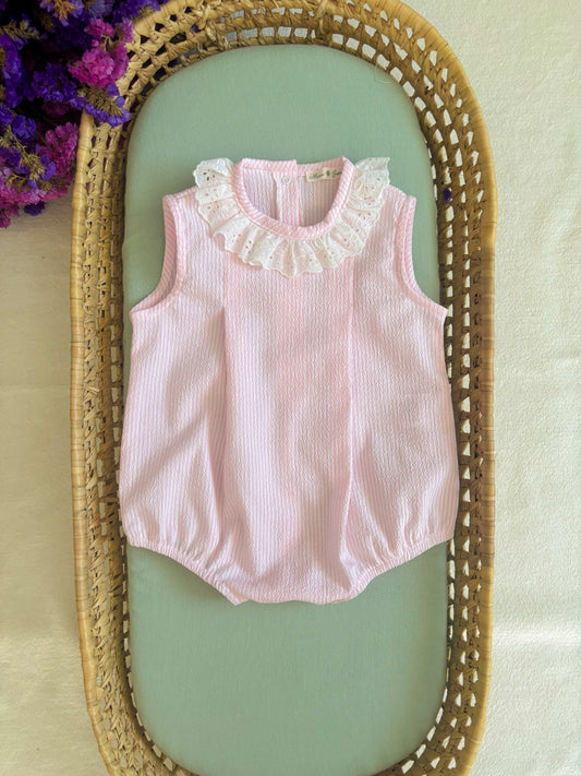 Fofo Risca Rosa c/ Gola Bordado Inglês