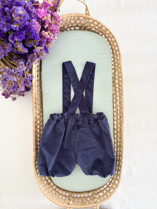 Conjunto Bloomer Bombazina Aveludada Azul Marinho e Bodie Camisa Gola Peter Pan
