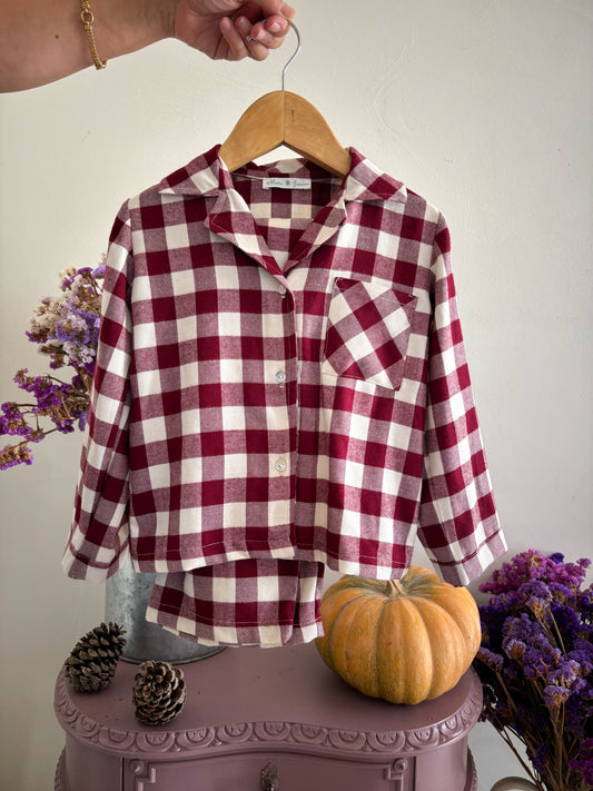 Camisa de Dormir Xadrez Vermelho e Cinza