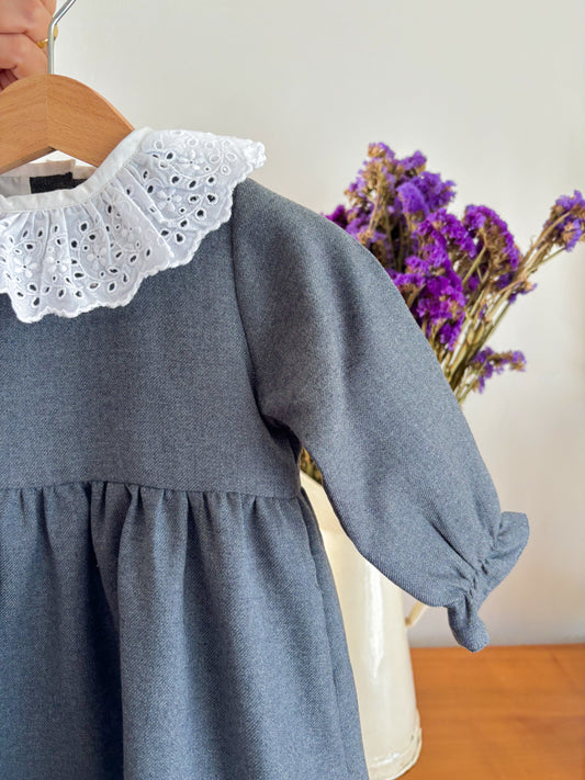Vestido Cinza Bordado Inglês