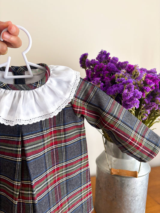 • Vestido Tartan Cinza e Vermelho