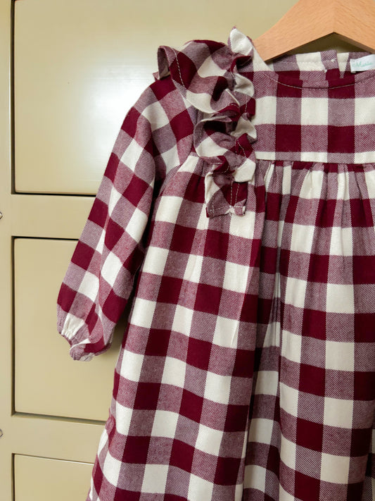 Vestido Folhos Bordô