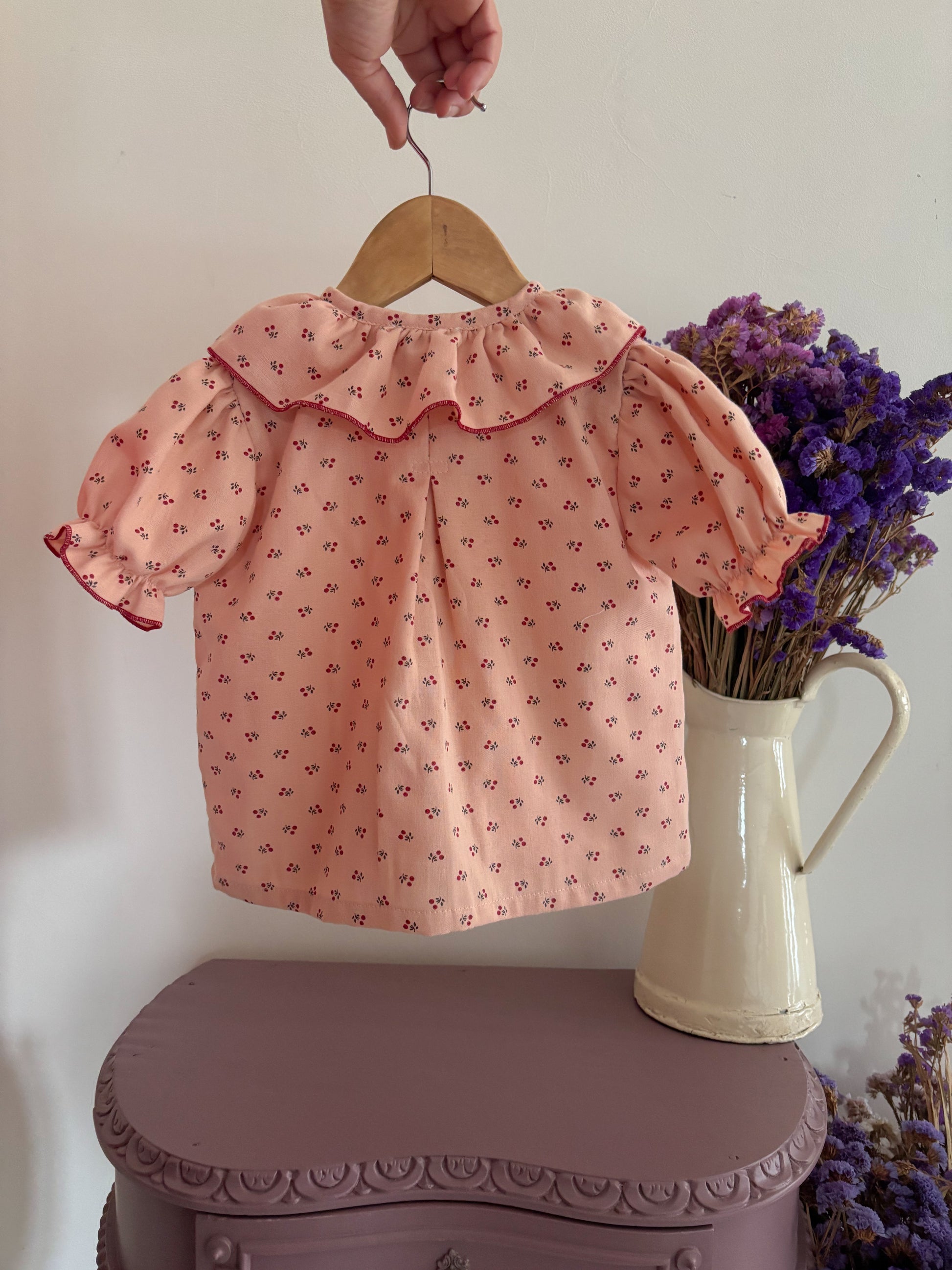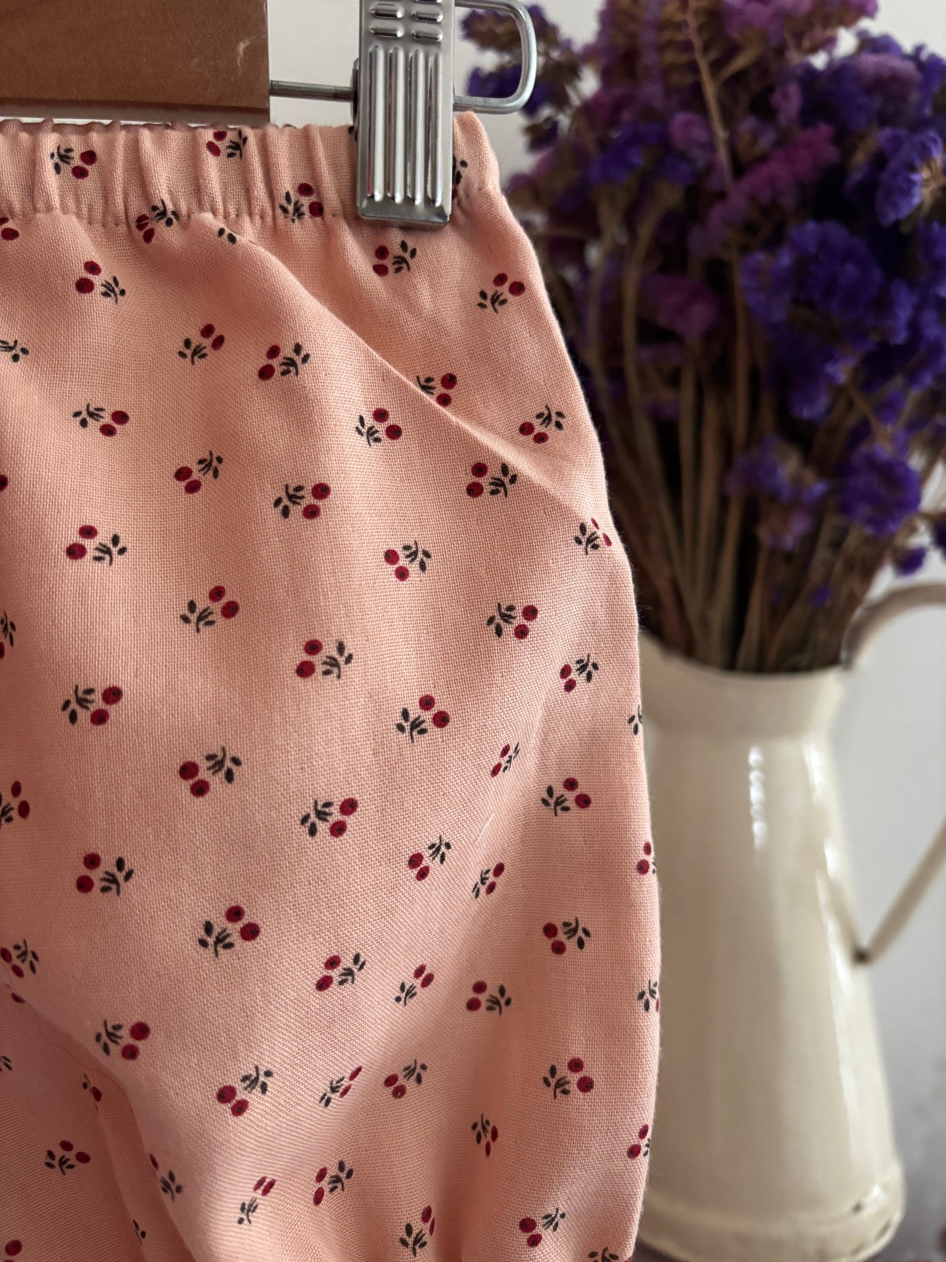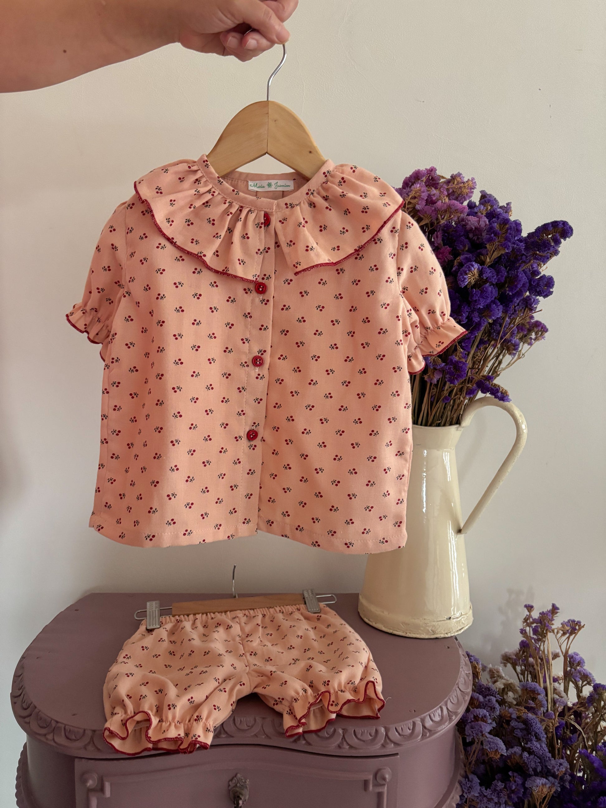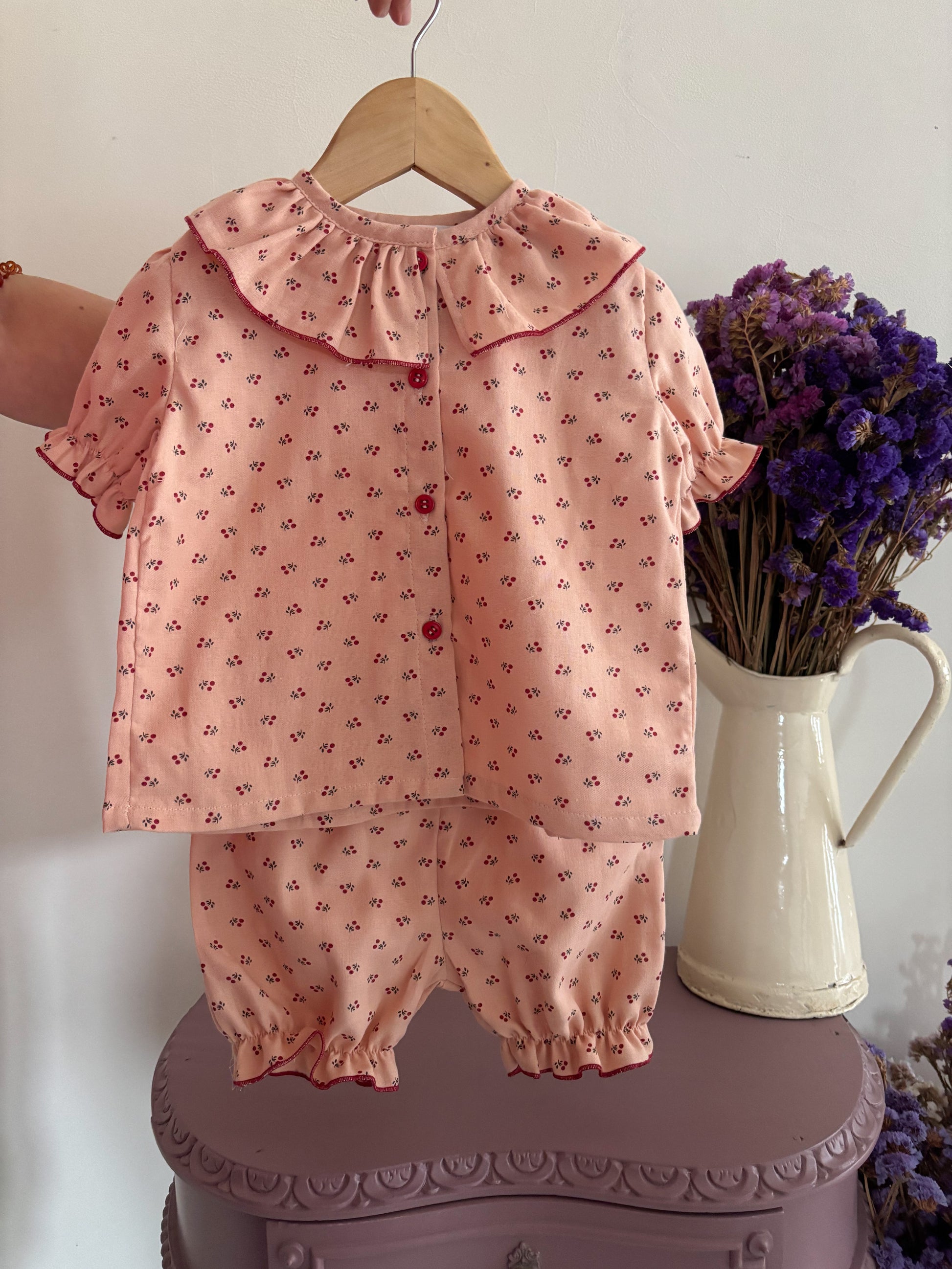 Pijama musselina vichy bege composto por blusa manga curta e calção.