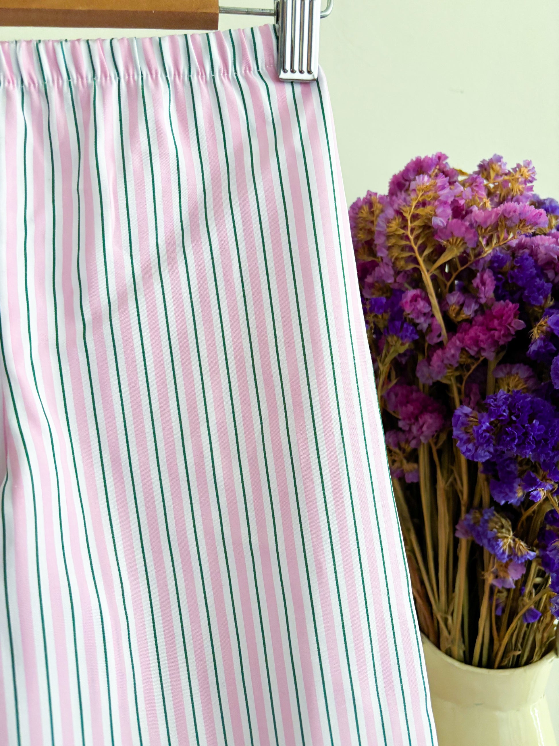 Pijama Risca Rosa e Verde