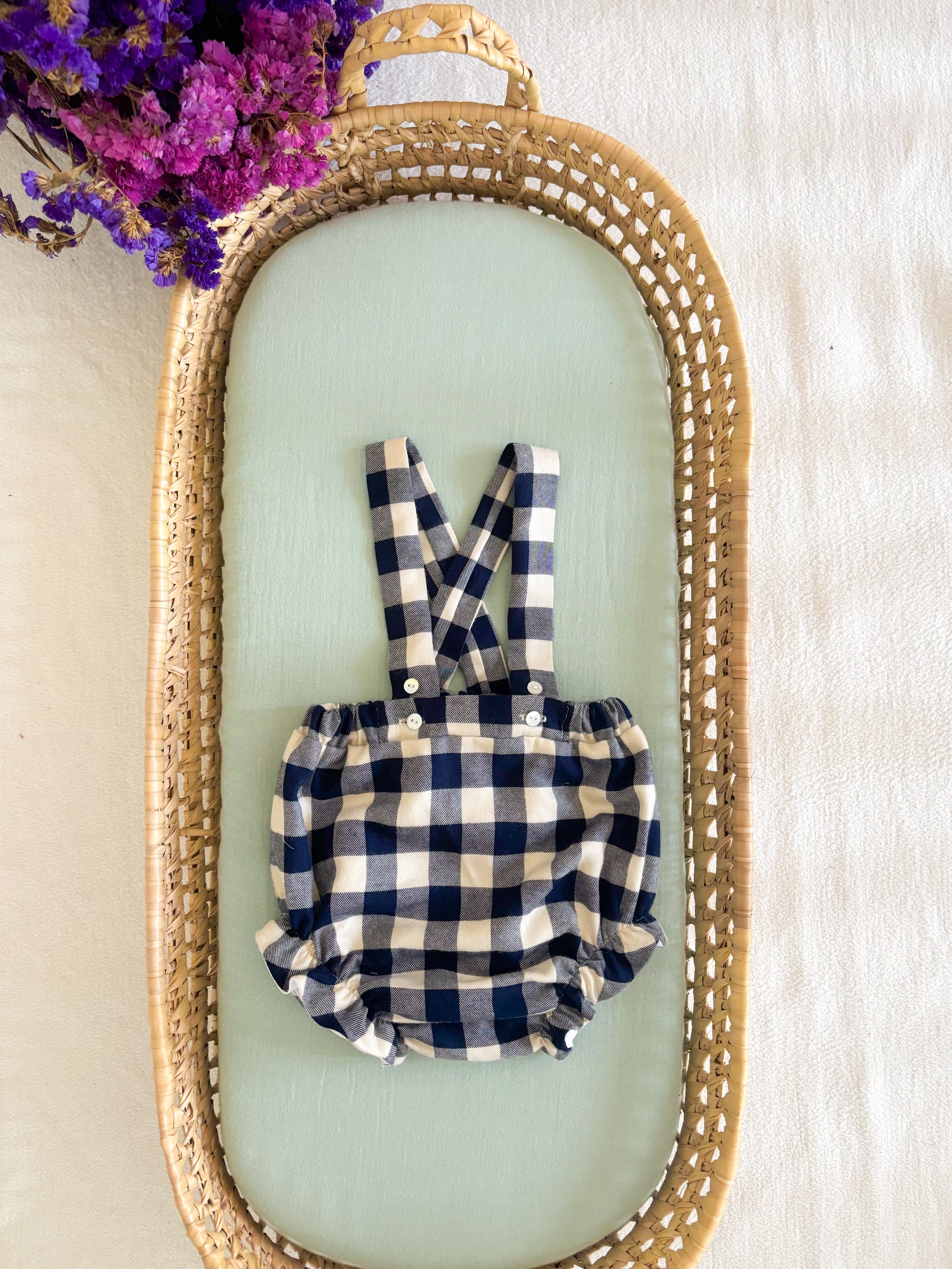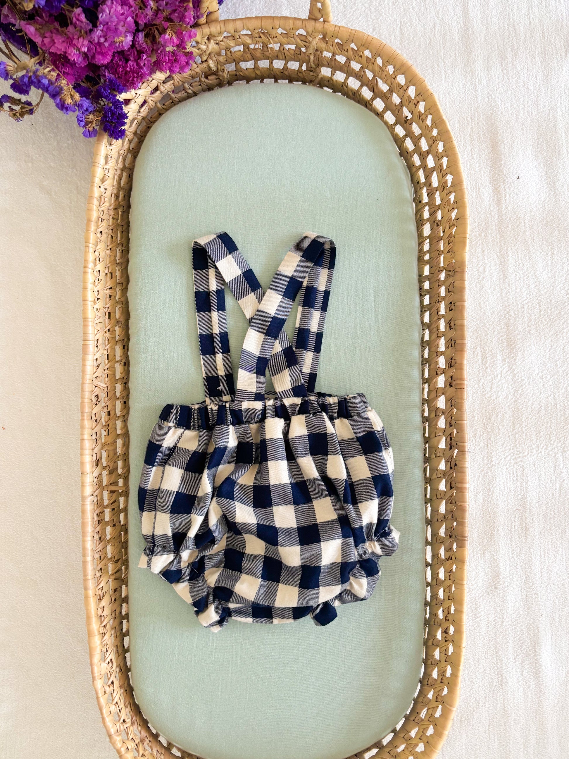 Fofo alças xadrez azul, contém dois botões em cada alça