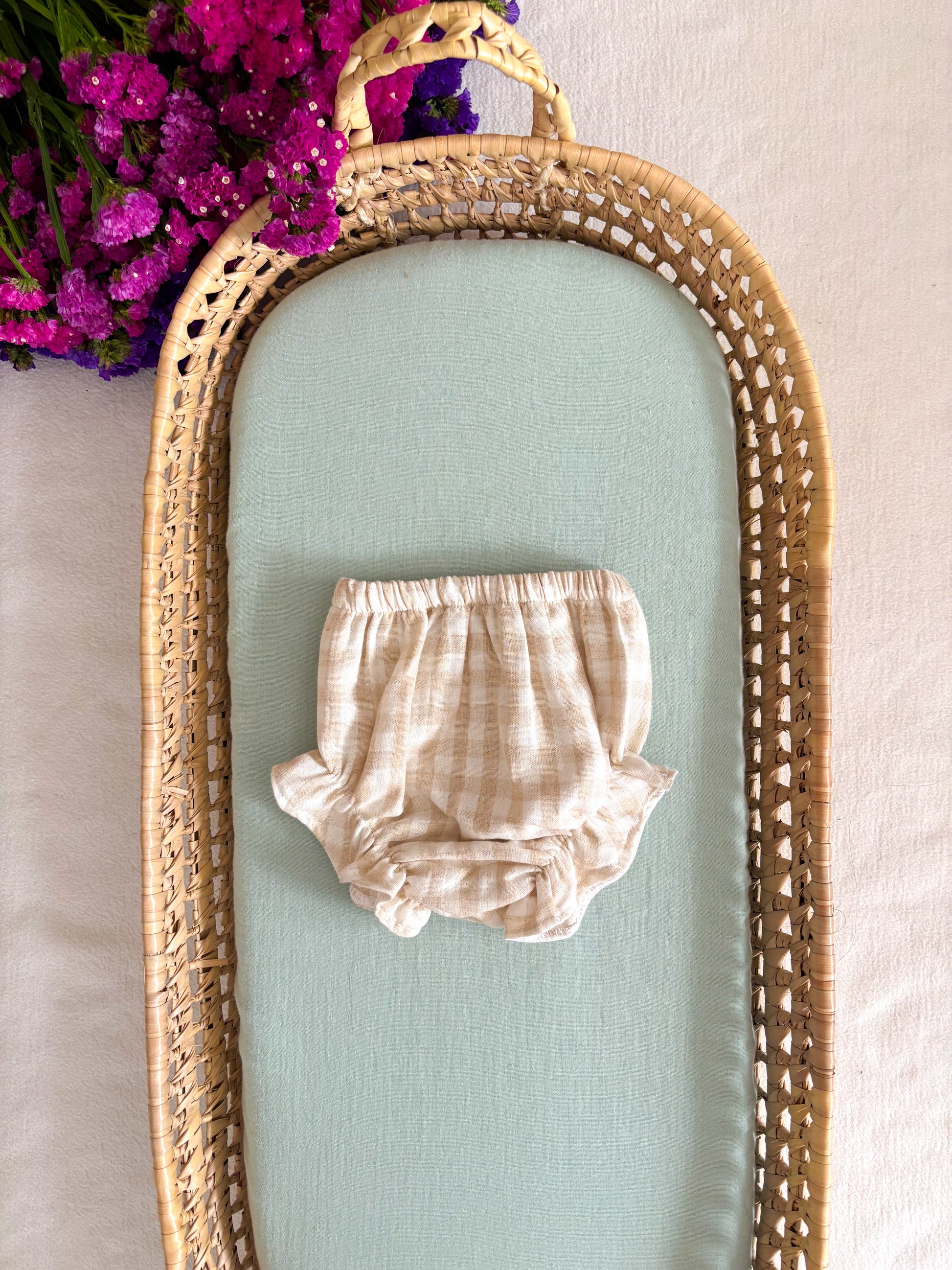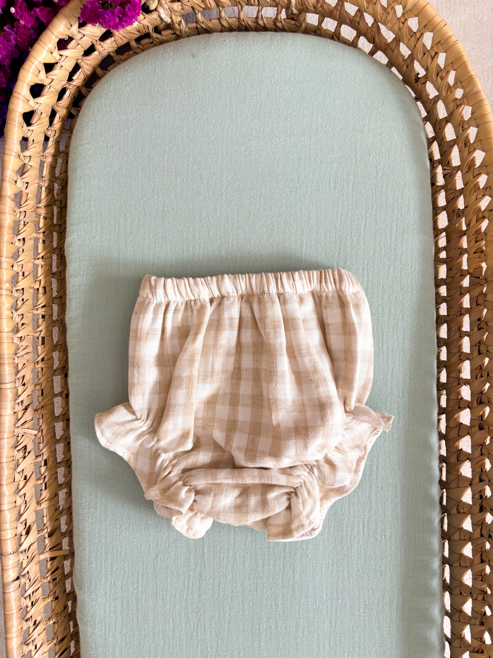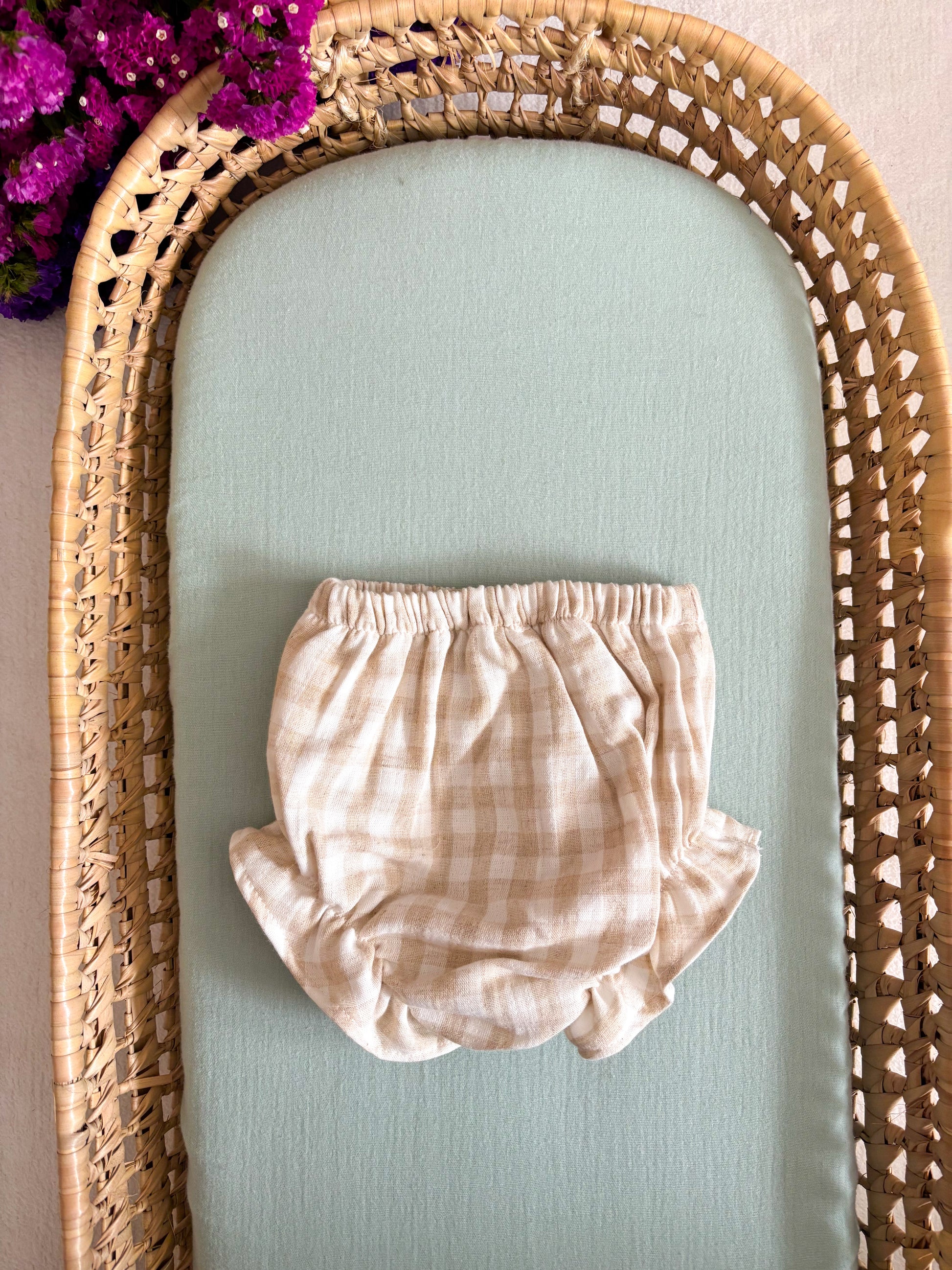 Tapa fraldas em musselina vichy canel.